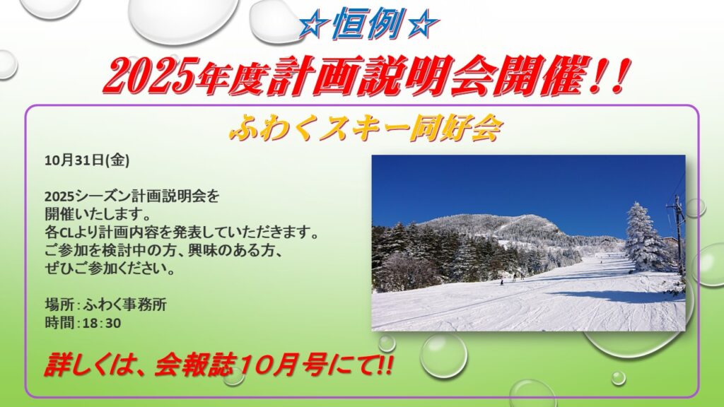 スキー同好会 2025/2026年シーズン計画